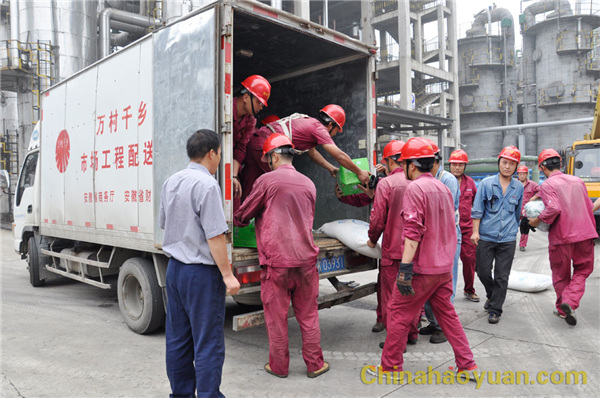 赵志贺、房继红与公司员工代表一一握手慰问,并为员工送上防暑饮料。