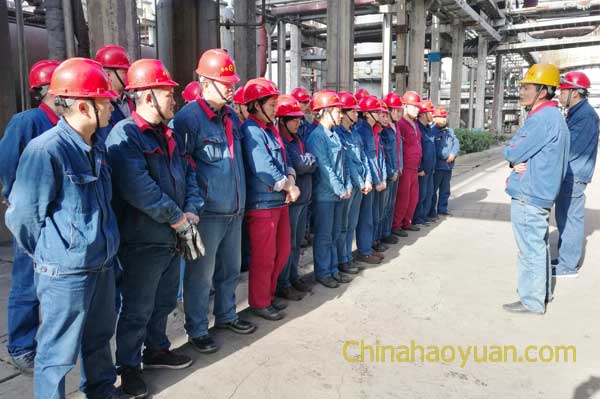 4月8日,为更好的稳定生产,检验新员工的业务技能,联合车间组织人员在3#合成举行了一场别开生面的反事故演练。生产办主任王飞虎观摩演练。