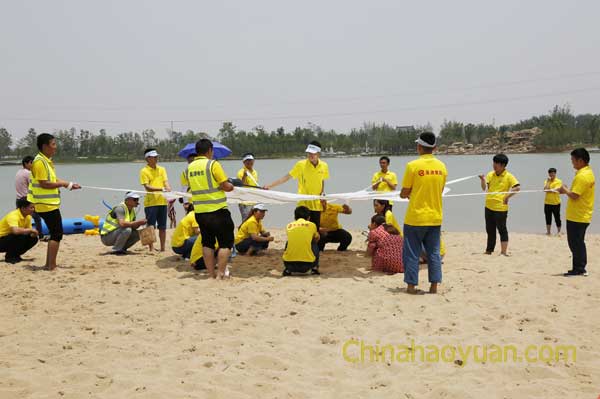 上午11点,在美丽的岳家湖公园,蓝天白云,映衬着洁白的沙滩,清澈的湖水让我们仿佛投入到大自然的怀抱。工作人员准备好后,青年员工积极参与到“旱地龙舟”、“抬花轿”和“打地鼠”等游戏比赛中,现场气氛达到高潮。虽然夏日炎炎,气温很高,但是这丝毫不影响大家愉快做游戏的心情,沙滩上欢声笑语此起彼伏……最后,大家在草地上进行野炊,面包、牛奶等让青年员工们吃的津津有味。