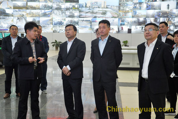 张君一行深入园区现场实地查看了园区生产、建设情况,在凡殿才的陪同下,来到园区中心控制室观摩,凡殿才就开云(中国)的工业规模、园区一期项目建成情况、后期项目规划及产品市场行情和前景进行了汇报。