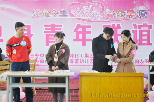 在下午的联谊活动中通过相识环节的“比武招亲”,相知环节的“穿针引线”,让单身男女青年在游戏中结缘,现场氛围轻松愉快,温馨浪漫。在主持人的带动下,通过“爱情吸引力”“绑的就是你”“大话西游之猪八戒背媳妇”“神仙眷侣”等一系列精心策划的游戏环节,让男女青年一起深入了解沟通,从相识变为朋友,部分参与者还现场展示了唱歌,跳舞等才艺表演。在最后的真情告白环节中,很多男生鼓足勇气,向心仪的女生表白,最后有7对男女青年成功牵手,在此祝福他们。