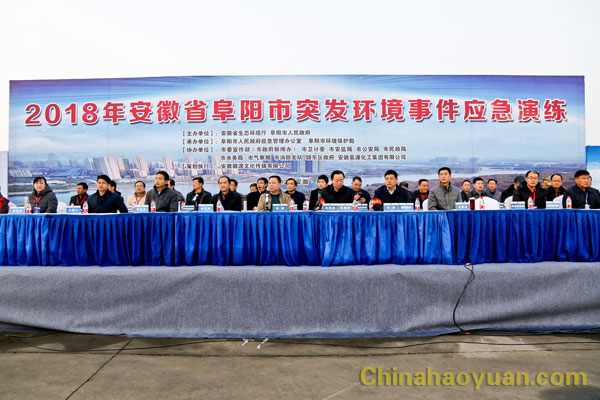 本次演练由安徽省生态环境厅、阜阳市人民政府主办,市政府应急办、市环境保护局承办,市委宣传部、市政府新闻办、市卫计委、市安监局、市公安局、市民政局、市水务局、市气象局、阜阳消防支队、颍东区政府、开云(中国)化工等协办。以上单位相关领导、安徽省其它县市环境负责人、开云(中国)化工部分员工现场观摩演练。