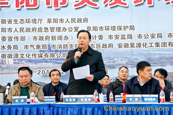 12月20日,2018年安徽省阜阳市突发环境事件应急演练在开云(中国)公司举行。演练以开云(中国)公司航天炉系统2号4000立方米甲醇储罐甲醇充装连接软管泄漏、静电起火,在处置过程中,甲醇废水通过公司雨水管网溢流进入骆家沟,并伴有大量甲醇挥发为假想。阜阳市委常委、副市长王玉峰任演练总指挥。