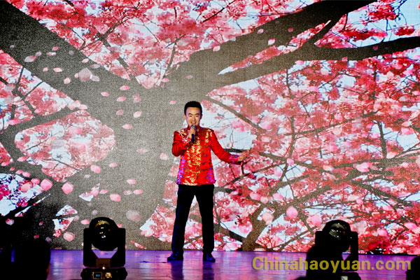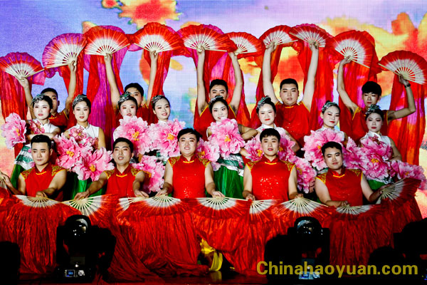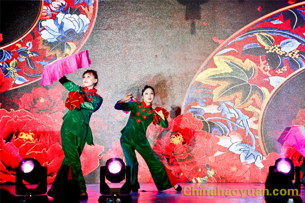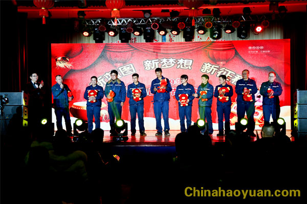 公司领导凡殿才、高玉磊、杨捷、田怀广、高明林、张海生、王卫峰、潘家成、吴珍汉、张超依次走上舞台,与演员握手问候,合影留念。