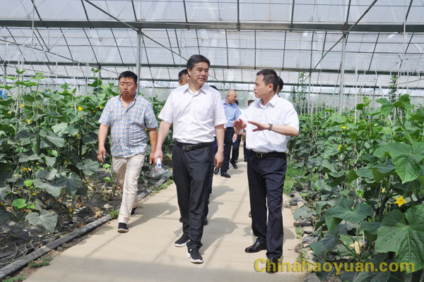吴照明一行冒着酷暑深入田间地头,实地查看了普惠农业公司现代化绿色无公害蔬菜大棚内长势良好的各种瓜果蔬菜。杨捷在大棚内现场介绍了普惠农业公司目前种植的蔬菜种类,以及如何应用先进农业管理方法进行蔬菜种植管理过程。参观人员纷纷表示通过实地参观,打消了疑虑,增强了信心,坚定了决心。