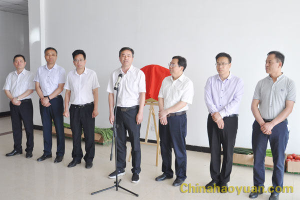 参观考察结束后,在公司办公楼一楼举行了普惠农业与安徽理工大学蔬菜直供种植基地“面向采购”挂牌仪式。仪式由颍东区委副书记王显明主持。