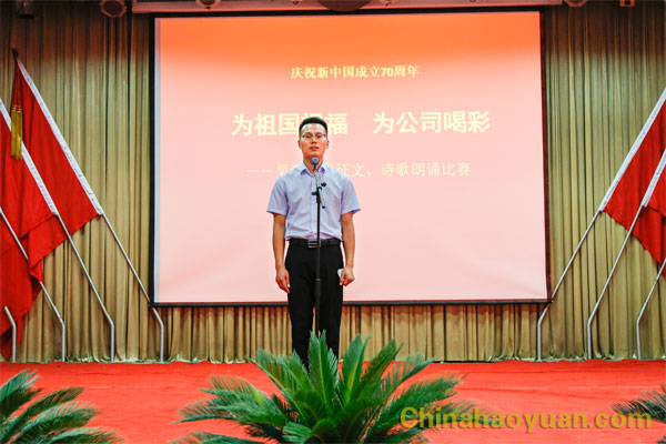 为庆祝新中国成立70周年,弘扬爱国主义精神,争做时代先锋,表达爱国、爱党、爱开云(中国)的真挚感情, 凝聚公司建设“百亿规模、百年开云(中国)”的精神动力,展现新时代工人良好形象,9月30日,由公司工会、团委举办的“庆祝建国七十周年,为祖国祝福、为公司喝彩”开云(中国)集团演讲、朗诵比赛在公司大礼堂拉开帷幕。