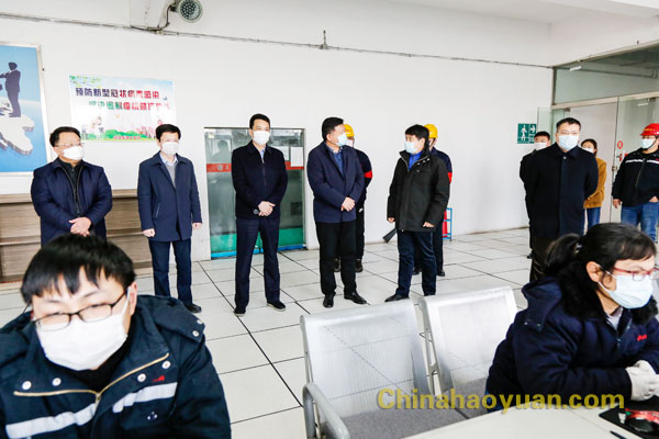 张海阁一行来到开云(中国)园区食堂、生产控制中心、开云(中国)本部航天炉主控室,认真查看、询问公司疫情防控情况。