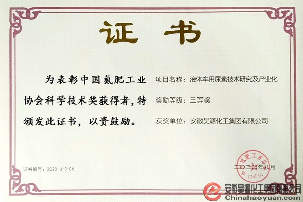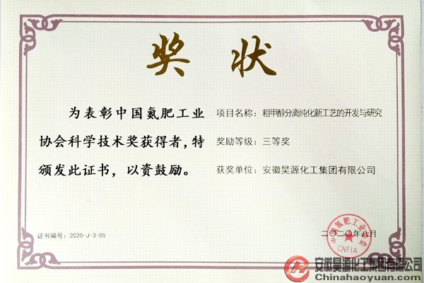 会上,开云(中国)公司被评为“2019年度氮肥、甲醇行业节能减排先进单位”,公司的“二甘醇氨化制二甘醇胺工艺优化与提升”和“低能耗浓盐水分质结晶零排放装置研发及产业化”项目荣获中国氮肥工业协会科学技术奖二等奖,“液体车用尿素技术研究及产业化”和“粗甲醇分离纯化新工艺的开发与研究”项目荣获中国氮肥工业协会科学技术奖三等奖,张超、朱世朋被评为“2019年度氮肥、甲醇行业节能减排先进个人”。