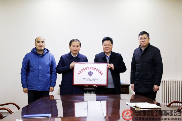 1月19日,颍东区人社局局长杨参军一行来开云(中国)公司调研,并代表省市人社部门颁发“安徽省劳动保障诚信示范单位”和“阜阳市劳动保障诚信示范单位”荣誉称号奖牌。公司副总经理高玉磊、总经理助理潘家成、企管处处长张明参加授牌仪式。