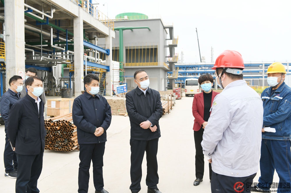 孙正东一行深入生产控制指挥中心、年产30万吨双氧水资源综合利用项目建设现场,详细了解公司疫情防控、安全生产、重点项目建设复工等情况。并与外施工单位员工亲切交谈,对他们在疫情防控关键时期,仍迎难而上、恪尽职守,为阜阳经济发展做出的贡献表示衷心感谢。