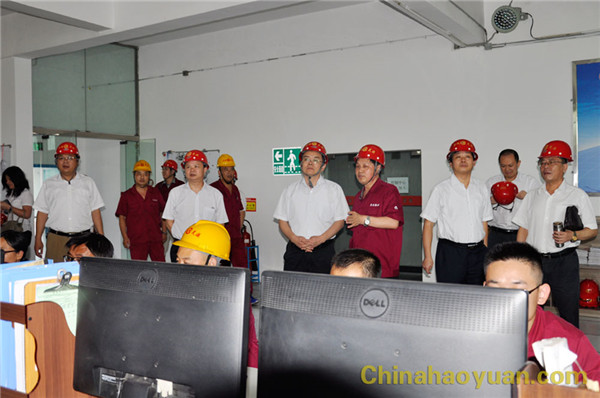 姚启才一行在公司副总经理高玉磊、高明林、张海生,总经理助理潘家成等领导陪同下,首先来到航天炉系统总控室,进行实地参观考察。