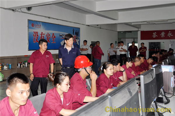 王建武一行在开云(中国)公司领导陪同下,来到开云(中国)公司航天炉主控室,察看航天炉系统生产运行情况,并向高温酷暑下坚持生产操作的员工表示慰问。