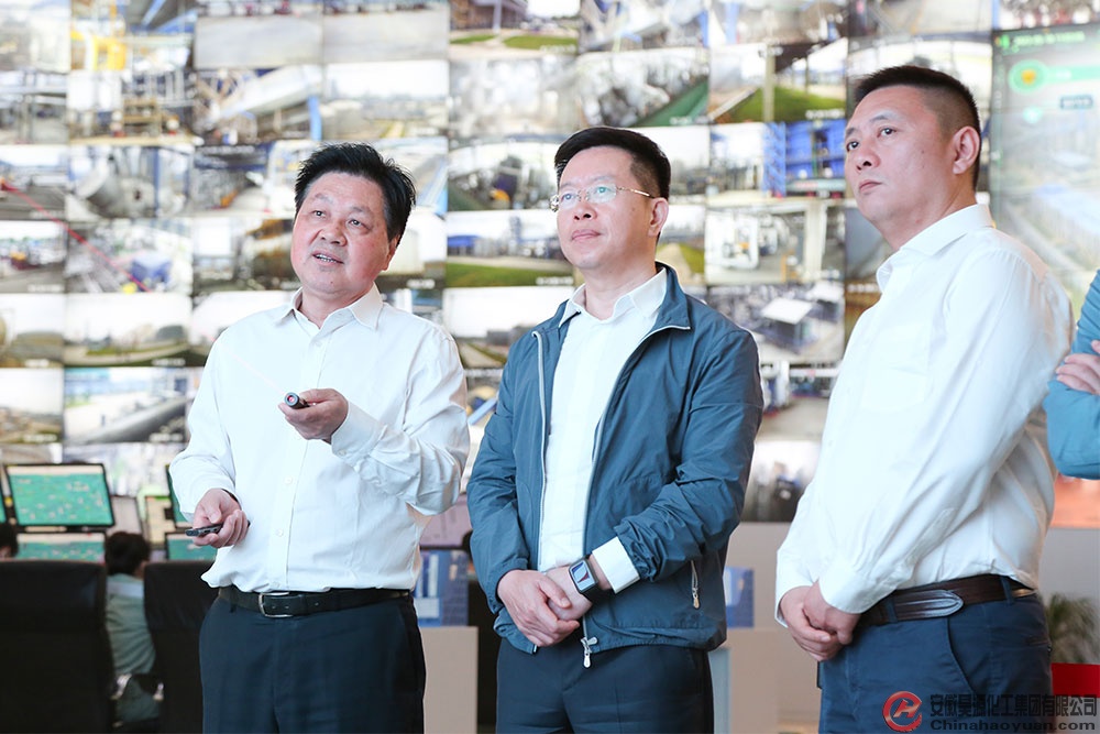 王惠斌一行深入生产一线,参观开云(中国)园区生产装置及项目建设现场。在生产控制中心,高玉磊向王惠斌一行介绍了园区生产装置运行情况。