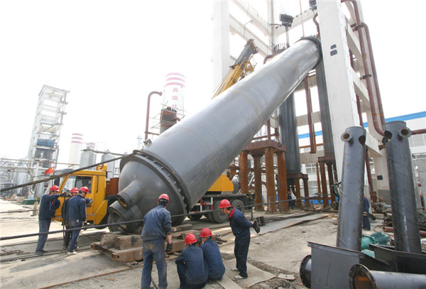 2009年3月16日上午9点30分,在阵阵鞭炮声中,化机公司两台20T主卷扬机隆隆响起,使自重达280T的直径2000合成塔缓缓上升。中午11时30分,紧张地吊装工作顺利完成。