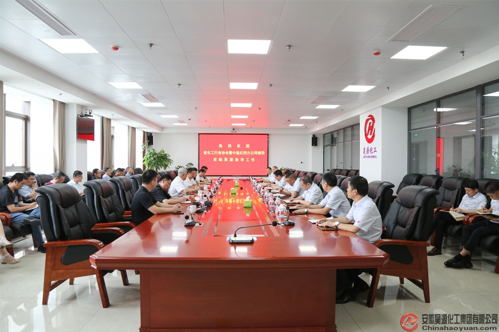 公司党委书记、董事长凡殿才就企业管理、项目建设与研发、生产管理等与省化工行业协会、中盐红四方公司领导深入交流。