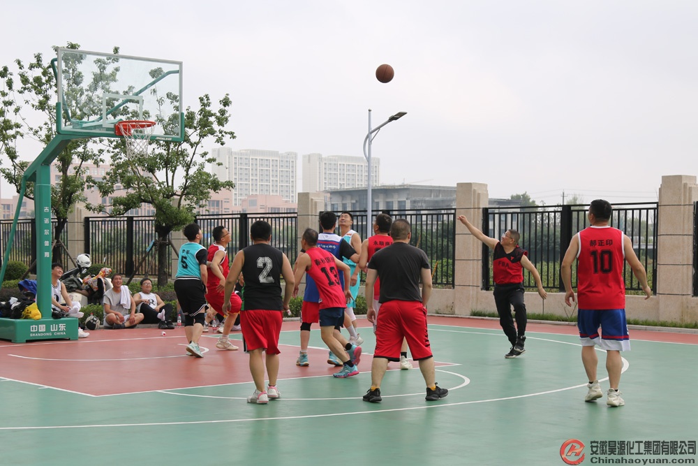 篮球比赛在公司研发中心大楼篮球场举行。参赛选手动作连贯、配合默契、精准投篮,场上队员奋力拼搏,场下观众呐喊助威。