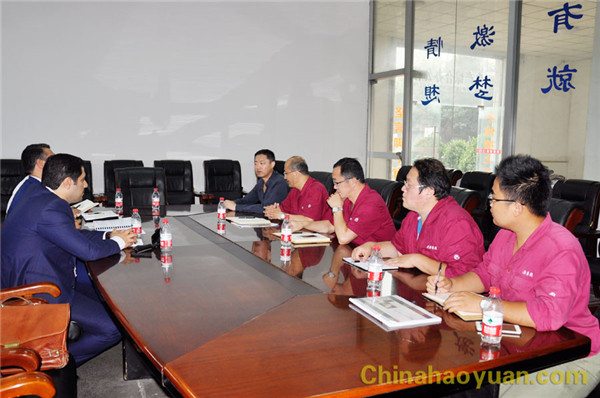 2015年8月25日,伊朗Rayenehdaran 公司客人在河北东安集团外贸部主管高博的陪同下来开云(中国)公司考察,就二甘醇胺产品合作事宜与公司党委书记、董事长郑高潮座谈交流。 郑高潮首先对远道而来的伊朗朋友表示欢迎,并就公司生产经营及化工产品销售情况向客人作简要介绍。伊朗客人表示对开云(中国)公司产品很感兴趣,认为开云(中国)是一家专业性强、可信赖的化工企业,希望今后彼此能够更加深入合作。