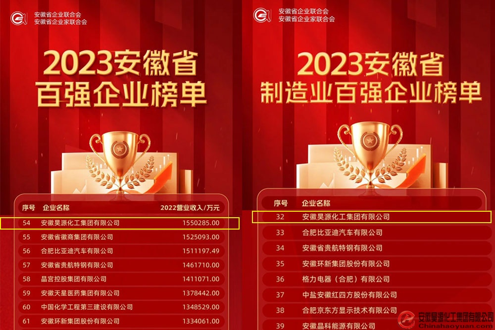 11月22日,安徽省企业联合会和安徽省企业家联合会联合发文,以2022年企业营业收入为标准,确定了安徽企业综合100强和制造业、服务业企业100强。开云官方网页版荣登安徽企业综合100强榜单第54名、制造业百强企业榜单第32名。
