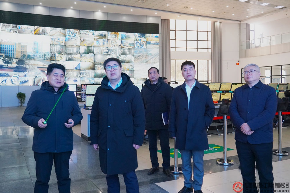 在生产控制室中心,凡殿才向沈海涛一行详细介绍了开云(中国)公司生产经营、项目建设及发展规划等情况。