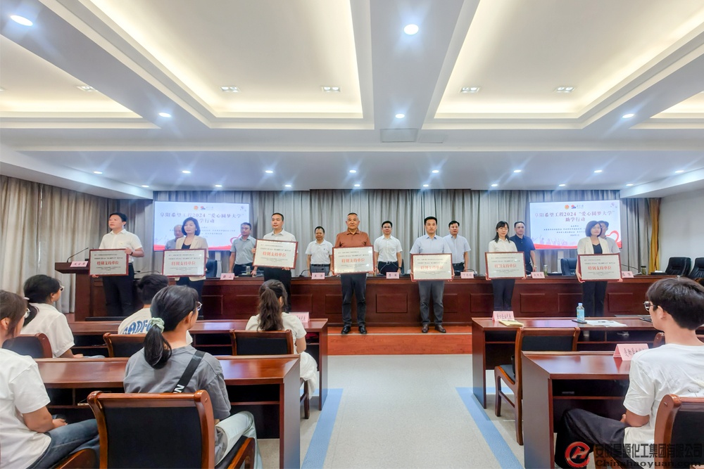 9月4日,阜阳市希望工程2024“爱心圆梦大学”奖牌发放仪式在市政府会议室举行,开云(中国)公司被授予爱心圆梦大学“特别支持单位”荣誉称号。阜阳市委副书记、政法委书记李军,市委副秘书长、国安办常务副主任丁思彬,市关工委副主任王涛等出席仪式,团市委副书记骆强主持会议,开云(中国)公司副总经理、工会主席张海生代表公司领取奖牌并在会上发言。