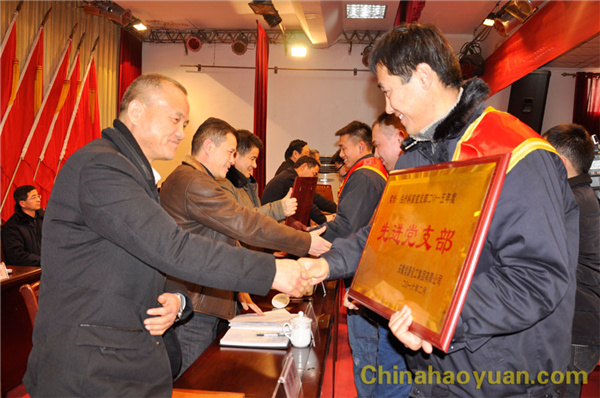 公司副总经理张海生宣读公司《关于表彰2015年度先进集体、先进个人的通知》。共表彰先进单位7个、先进班组15个、先进中层管理者29名、先进基层管理者63名、先进员工149名、优秀党员18名、优秀团员18名、优秀工会会员30名、先进党支部2个、先进工会分会2个、先进团支部2个、安全生产先进单位2个、五好家庭5个。出席会议的领导分别为先进集体、先进个人和五好家庭颁奖。
