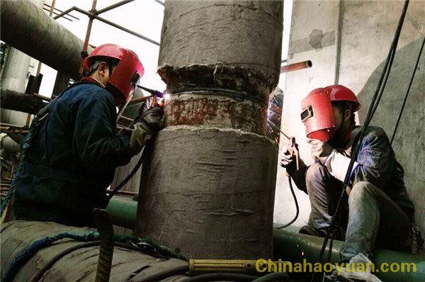 化机公司在接到公司的通知后高度重视,并在4月1日下午安排人员加班加点对需要更换管道进行预制、分布器提前制作钻孔,并在下班前将检修使用的电焊机、等离子等工具送到检修指定地点接好试好,确保不影响第二天的正常的检修工作.为了尽快完成本次检修工作,化机公司合理安排人员共有7铆、10焊人员参与本次检修,在4月2日,化机分公司领导在班前会上,再次要求参与本次检修人员要在确保安全质量的前提下,积极推进自己的工作进度为生产提前开车提前创造效益提供便利.经过参与检修人员的通力配合,化机参与检修的铆焊人员用了4个小时时间,保质保量地完成了此次管道设备隐患消除工作,确保安全生产.