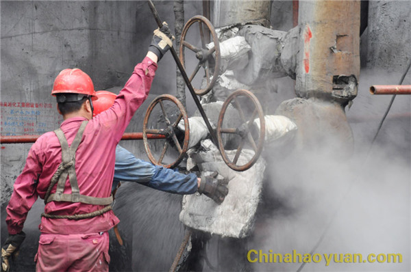 4月2号,因1#变换饱和热水塔出气管道腐蚀泄露,碳化车间对1#变换系统进行停车检修。