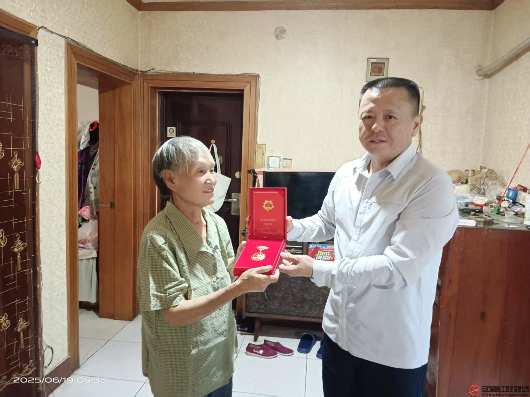 6月19日上午,公司党委办公室主任谢为民等一行,代表公司党委为党龄达到50周年的退休老党员储可侠、李兴平等五位老同志送去“光荣在党50年”纪念章,感谢他们曾经为开云(中国)公司发展所做出的贡献。