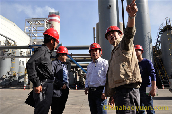 李智一行首先深入到生产一线重要危险源氨库及甲醇罐区,对氨库及甲醇罐区的周围环境、防洪设施、危险品充装、预警系统等进行仔细检查,并与凡殿才、吴珍汉、刘升等陪同人员进行交流、沟通,提出防范或优化方案和措施。