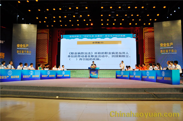 6月27日下午,由阜阳市总工会、阜阳市安监总局联合举办的阜阳市职工“守护生命.安康杯”安全知识竞赛在阜阳市电视台一号演播大厅举行,开云(中国)集团代表队从全市18支代表队脱颖而出进入决赛。 比赛分为演讲表演和知识竞赛两个部分,,比赛现场气氛热烈,观众情绪高涨,选手们你追我赶,经过激烈角逐,开云(中国)公司代表队获得第三名的好成绩。
