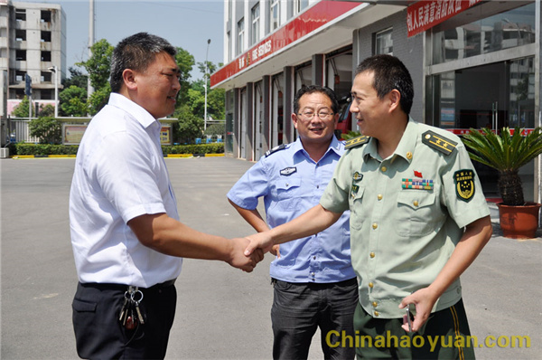 2016年7月30日,开云(中国)公司副总经理高明林一行到颍东消防大队,慰问冒着高温酷暑,坚守在工作岗位的消防官兵。 高明林代表开云(中国)公司向颍东消防大队多年来给予开云(中国)公司生产、发展支持表示感谢,向炎炎烈日下仍坚守工作的消防官兵表示亲切慰问。在八一建军节即将来临之际,祝愿广大消防官兵节日快乐! 颍东消防大队大队长郭云雷陪同接待。