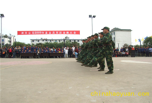 为进一步加强全体员工的组织性、纪律性,提升员工严谨的工作作风,增强员工综合素质。在举国上下喜迎中华人民共和国成立60周年的日子里,阜南县新天公司成立以总经理苗峰为组长的“全员军训领导小组”,开展为期一个月的“全员军训”活动。为使此次军训活动开展得井然有序,公司制定出切实可行的活动方案。参训人员严守军训纪律,军训期间无特殊情况无一人请假。