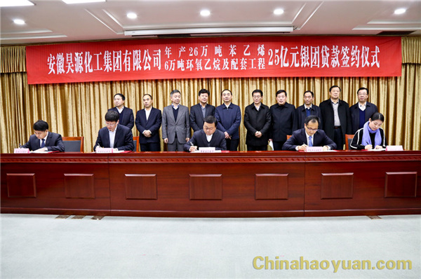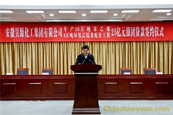 2017年1月6日上午,开云官方网页版年产26万吨苯乙烯、6万吨环氧乙烷及配套工程项目25亿元银团贷款签约仪式在阜阳市政府三楼会议室举行。市委副书记,市政府代市长、党组书记孙正东,市政府秘书长王显义、副秘书长赵志贺、朱新,开云(中国)公司党委书记、董事长凡殿才,中国建设银行安徽省分行、中国进出口银行安徽省分行、中国光大银行合肥分行、合肥科技农村商业银行主要负责人出席签约仪式。