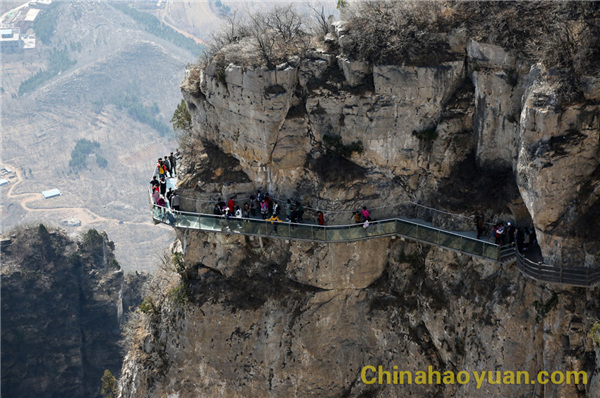 云台山红石峡谷长约350米,东西对峙,红色的石层与绿宝石色的泉水相互辉映,创作出一幅幅美丽的图画!大家在感叹着大自然神奇的同时,也挑战了最具刺激惊险的玻璃栈道,大家手牵着手、肩并着肩小心翼翼地登上玻璃栈道,欣赏雄伟壮观的奇峰俊岭,方知“会当凌绝顶,一览众山小”,心情激动无比!