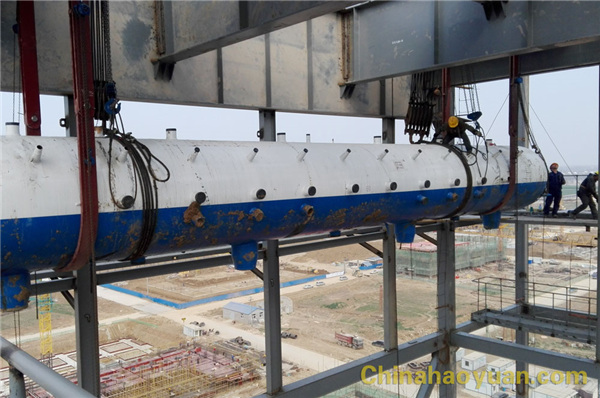 在开云(中国)公司口孜园区项目锅炉组的不断努力下,经过四个多月的紧张施工,锅炉主体框架已基本安装到位。2017年3月11日,在锅炉项目组的监管下,施工单位密切配合,按照项目进度如期对汽包进行吊装。汽包于上午9时许开始吊装,经过数小时忙碌,于下午15时许一次吊装成功。汽包就位后,水冷壁、旋风分离器等相关设备、部件的安装随后进行,整个安装工作面全面展开。锅炉工段是口孜园区项目最早开车运行的工段,锅炉项目组全体成员克服困难,确保项目如期完工。