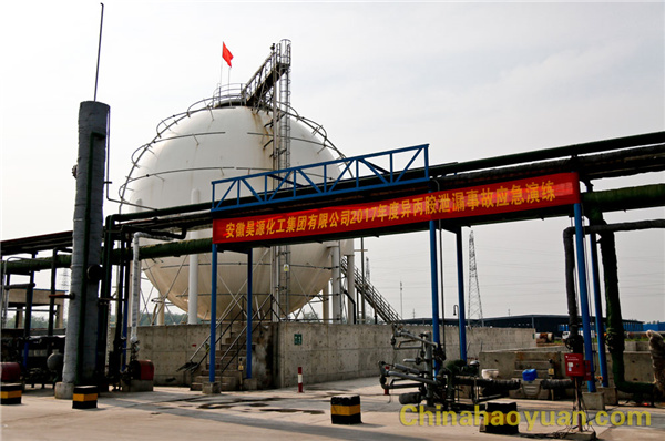 公司安全副总工、安全科科长、演练总指挥刘升向副总经理张海生汇报:“演练准备完毕,请领导指示。”“演练开始!”随着张海生副总经理一声令下,异丙胺操作工巡检至罐区时,发现异丙胺球罐底部的输送物料管道连接法兰突然泄漏,该巡检人员中毒、灼伤倒地。岗位操作人员通过现场视频监控,发现这一情况,立即向生产调度及车间管理人员汇报。公司启动应急预案,根据危险化学品泄漏事故专项应急预案进行现场人员施救,并对异丙胺洗消及泄漏点堵漏处理。保卫科消防人员通过高压水枪压制及稀释泄漏的异丙胺,动力处组织维修人员进入泄漏现场开始堵漏。同时,环保科组织技术人员封堵地沟,防止地沟内的异丙胺外流,并对现场大气质量及地沟内水质进行反复分析。待泄漏消除,现场大气及水的质量合格,演练结束。