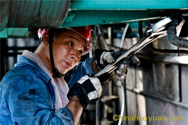 操作人员巡检在炙热的设备塔群中,虽然身上被烤得火辣辣的,但他们依然认真检查着每一个控制点、每一台机泵,测量着机泵温度和振动,确保设备在高温下健康、稳定运行。