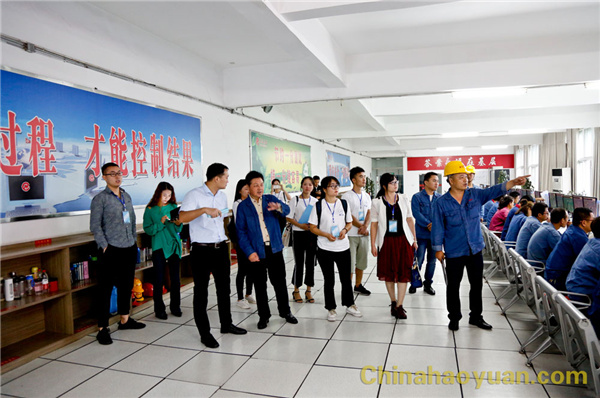在会议室,高玉磊向“安徽大学博士团”介绍了企业科技创新、人才队伍建设、节能减排、安全生产、绿色环保及企业转型升级等情况,就本次调研课题进行深入交流。
