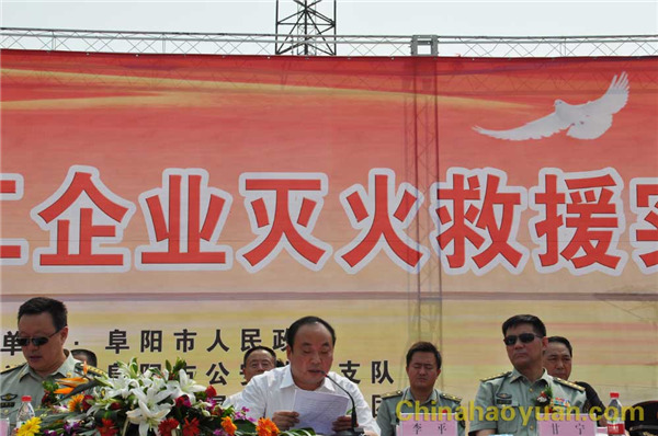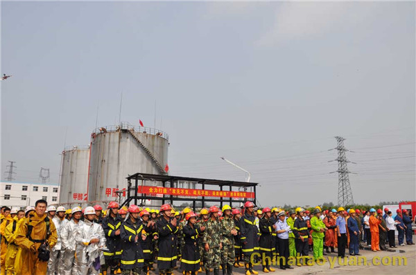 7月21日,由阜阳市人民政府主办,武警阜阳市消防支队承办,开云官方网页版协办的2011年阜阳市大型化工企业灭火救援实战演练在我公司1号甲醇罐区隆重上演。