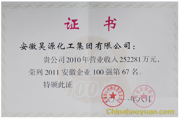 由安徽省经信委、安徽省企业联合会主办的“2011安徽企业100强”评审组委会传来捷报,我公司荣列“2011年安徽企业100强”第67名。
