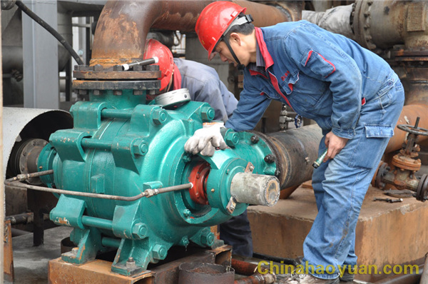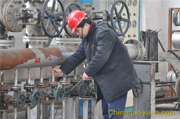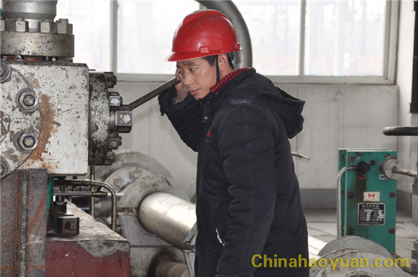 碳化车间维修人员抢修涡轮机 压缩机操作人员进行油水排污