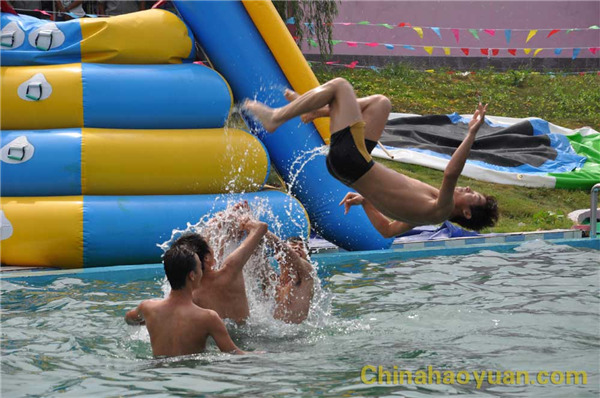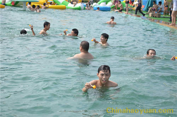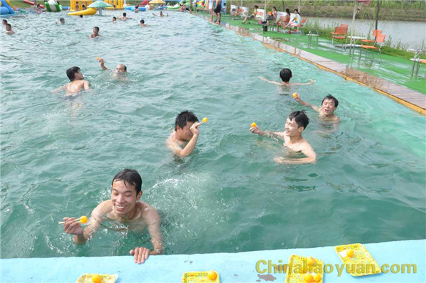 来自生产各团支部的七十多名青年欢聚在一起,尽情地享受盛夏中的清凉水世界。此次活动,精彩纷呈、别开生面。“大珠小珠落玉盘”游戏听起来是那么的诗意浓浓,要求在一定的时间内,用游泳的方式把水面上的兵乓球夹到指定的盘子内,不仅对选手们的速度提出了要求,更对技巧提出了挑战,大家个个争先恐后、使出浑身解数;“水上风火轮”游戏要求选手们要有较好的身体平衡能力和动作协调力;“无敌水上漂”游戏使女选手们真切地过了一把 水上“飘”的瘾。比赛之余,青年朋友们有的悠闲地划着小皮船;有的打起了水仗;更有大胆的青年朋友玩起了水上特技。呐喊声、嬉笑声,水面上到处洋溢着欢乐的笑脸。