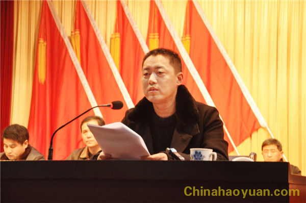副总经理凡殿才宣读《关于表彰2012年度先进集体及先进个人的通知》
