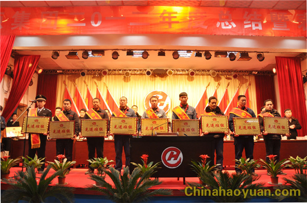 公司副总经理凡殿才宣读了《关于表彰2012年度先进集体及先进个人的通知》。共有5个安全生产先进单位、8个先进单位、45个先进班组、40名先进管理者、59名先进班组长、199名先进个人受到表彰,同时受到表彰的还有五好家庭、先进党支部、先进工会分会、先进团支部、优秀党员、优秀工会会员、优秀团员等。
