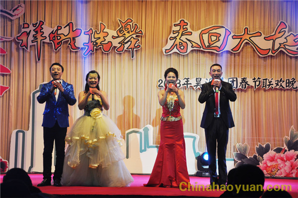 在一曲《相亲相爱》的温馨歌声中,晚会落下帷幕,公司领导与演出人员一一合影留念。