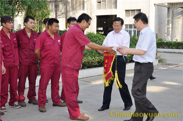 随后,在李继忠、田怀广、张海生等公司领导陪同下,李亚东处长一行又深入到生产一线,为公司7月份“党员文明岗位”获得单位联合车间进行授旗,并与党员代表合影留念。