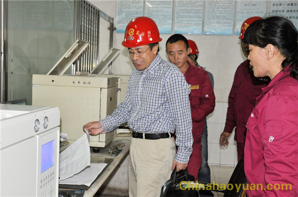 王成银一行首先来到公司化工车间分析室、中心化验室,检查公司的检测设备配备情况,现场查验了分析检验各类记录,并向随同人员询问检验流程和检验产品种类。