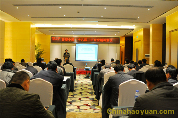 王曙光教授从党的十八届三中全会决议内容,结合国际、国内经济环境,深入解读了十八届三中全会精神对工业、农业、环境、医疗等领域的影响。如何紧抓国家改革方向,快速推动企业健康发展等,也进行了深入解读。