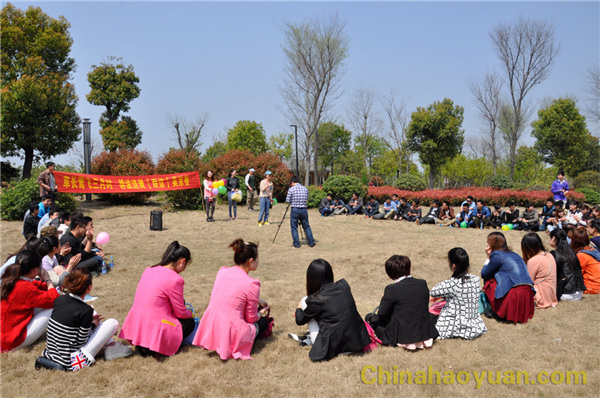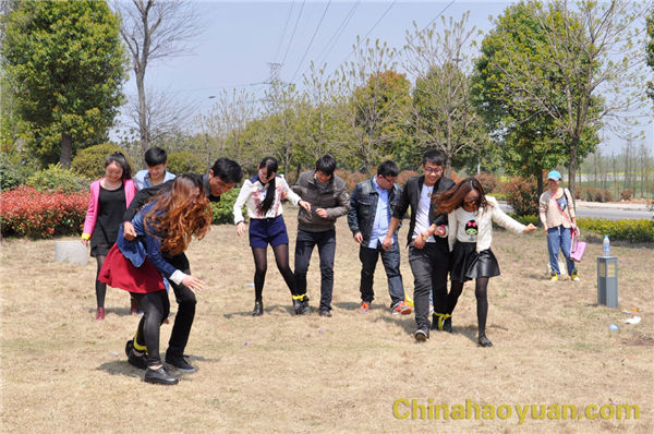 不知不觉经过两个小时的行驶,我们终于到达了本次活动的目的地:颍上湿地公园。望着对面一群群时尚靓丽的女孩,我们公司男生顿时兴致高昂,此时,在团委书记冯婷婷的带头组织下,大家选取公园一角,围坐成一圈,在相互介绍姓名和爱好后,开始了愉快的游戏时光,“昊京香”三家公司男女生互相搭配,默契的完成了一系列游戏动作。